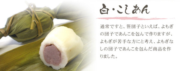 通常ですと、笹団子といえばよもぎの団子であんこを包んで作りますが、よもぎが苦手な方へと考え、よもぎなしの団子であんこを包みました。