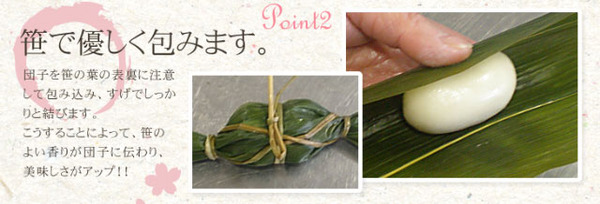 こうすることによって、笹のよい香りが団子に伝わり、美味しさがアップ!