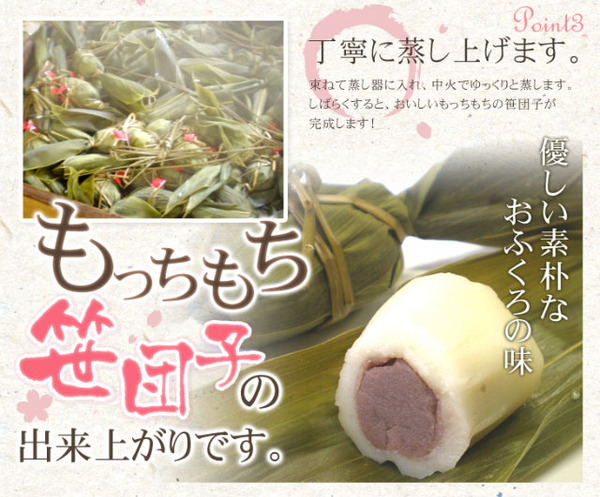 お団子作りから、笹の葉に包むまで、愛情込めて手作業で行っている、昔ながらの手法です。