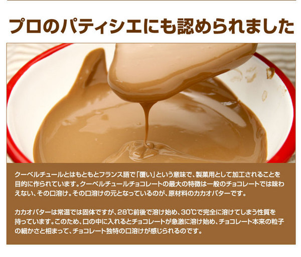 クーベルチュールチョコレート♪口に入れてから急激に溶け出すチョコレートはヤミツキ♪